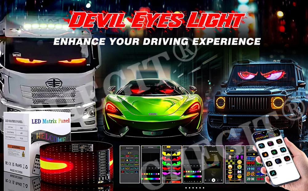 if you use it to decorate the big truck, it is better to buy 2 pieces LED car soft screen stickers, which can realize the cool devil's eye effect! Please check carefully whether it is correct before purchase!