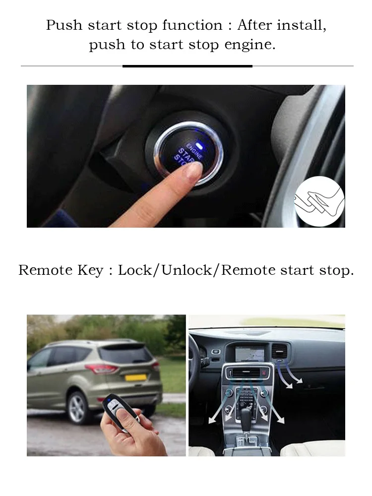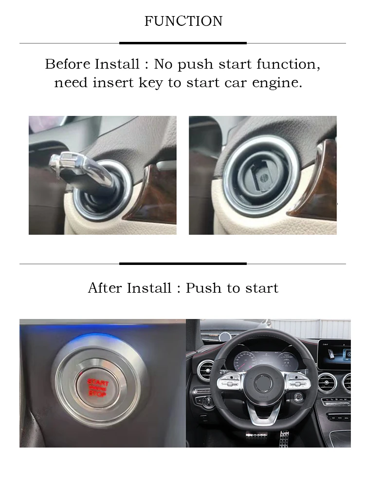 Car push start stop system remote key start stop system and Keyless Entry syetem for Mercedes benz car ML GL G A B CLA GLE Class with 2 new remote key with smart phone app control bluetooth type