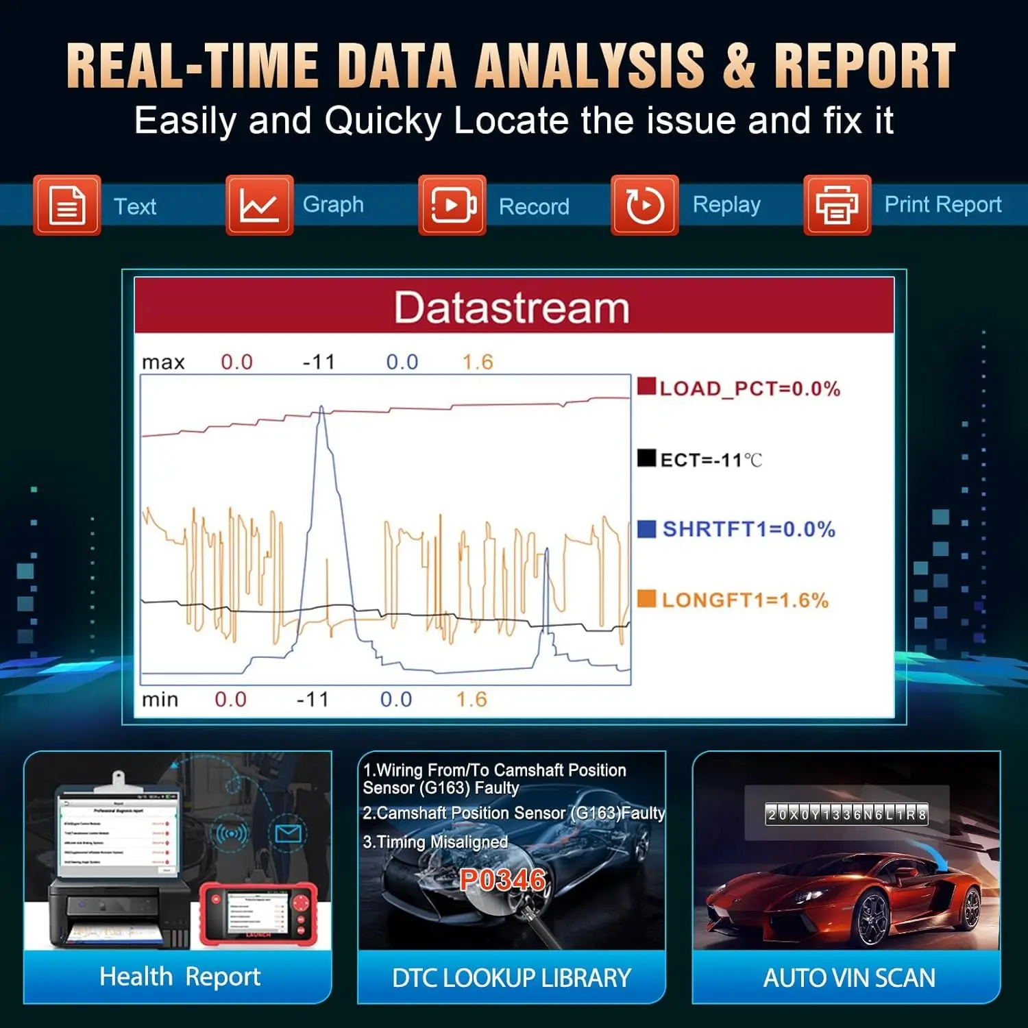 OBD2 Function: Supports data recording and playing back
