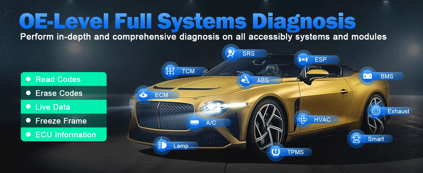 XTOOL A30M car diagnostic tool gain comprehensive access to all vehicle systems — far beyond just the engine code reader. Including Engine, Transmission, ABS, SRS, BCM, AC, Fuel System, and more. Get a complete insight into your vehicle’s condition and spot hidden problems before they turn into expensive repairs.